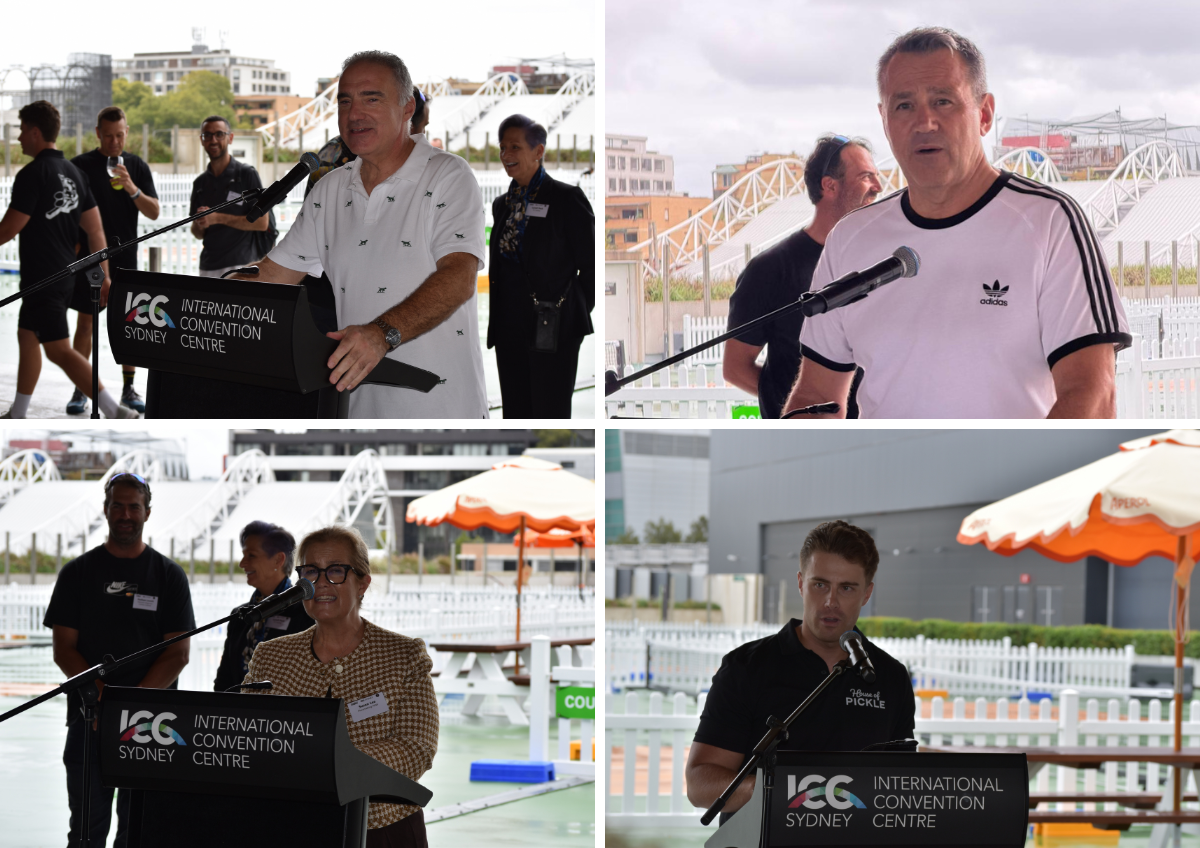 The Hon Steve Kamper MP, NSW's Minister for Lands and Property, Minister for Multiculturalism, Minister for Sport, and Minister for Jobs and Tourism addressed the audience before he and the business leaders in attendance enjoyed playing pickleball on the new courts at the ICC Sydney.
